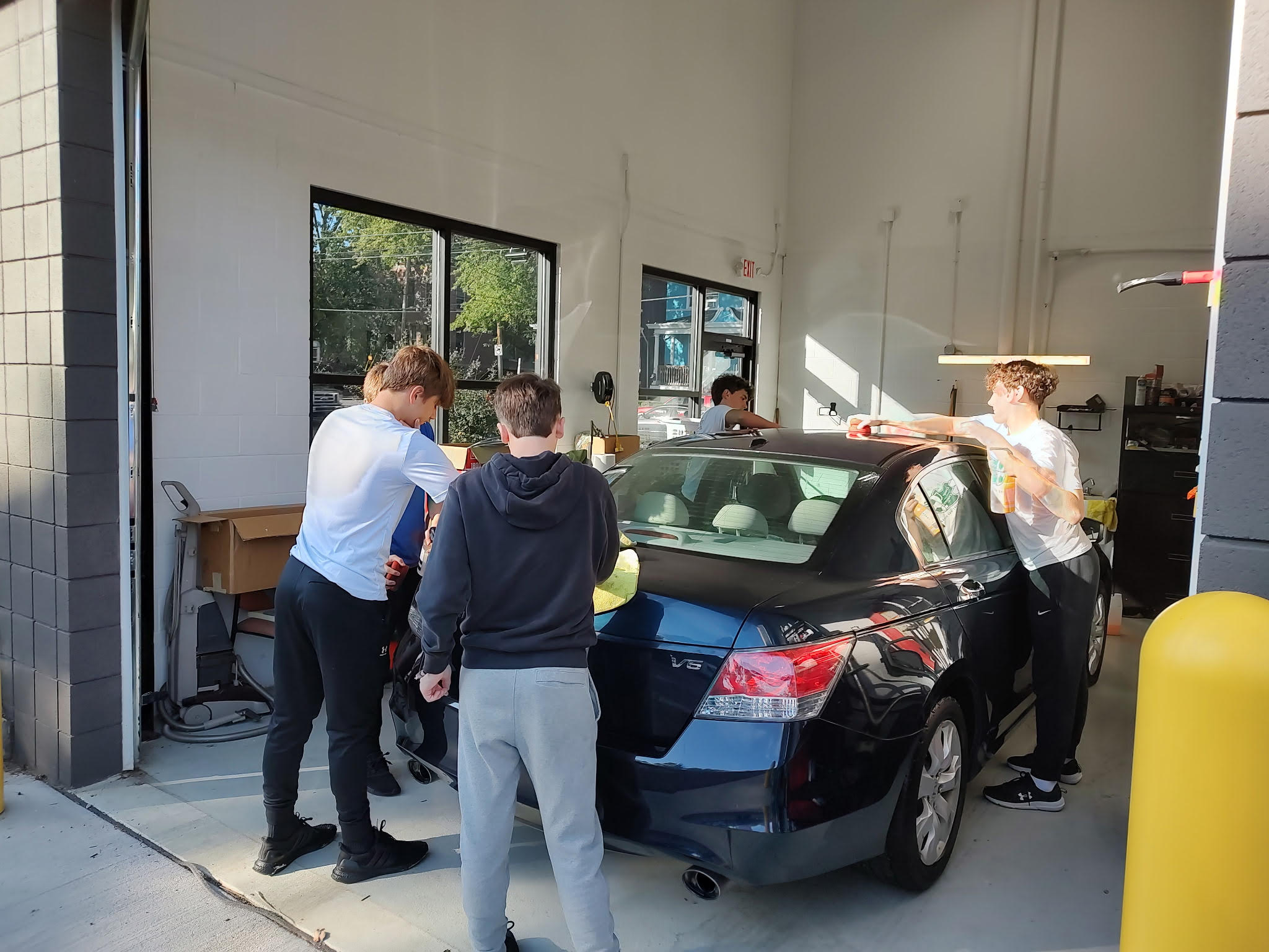 On October 2, 2025, students from Bishop Brossart High School in Alexandria came to the Clinic for a service project. The group was great help washing, waxing, and sweeping a donated Honda Accord.